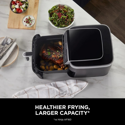 سرخ‌کن هوای گرم نینجا تا 60٪ صرفه‌جویی در انرژی و 50٪ سریع‌تر از اجاق‌های سنتی عمل می‌کند. با 75٪ چربی کمتر غذاهایی سالم‌تر آماده کنید و از روغن کم یا بدون روغن استفاده کنید. این دستگاه با 6 عملکرد متنوع شامل سرخ‌کردن، برشته‌کردن، پختن و آبگیری، گزینه‌ای ایده‌آل برای پخت سریع غذاهای اصلی و میان‌وعده‌هاست. ظرفیت 6.2 لیتری آن برای خانواده‌ها مناسب بوده و فضای کافی برای 4 سینه مرغ دارد. محتویات شامل کشوی نچسب قابل شستشو، توری قابل تنظیم و کتاب آشپزی است. رنگ خاکستری با طراحی جمع‌وجور و کارآمد، انتخابی شیک برای آشپزخانه شما!