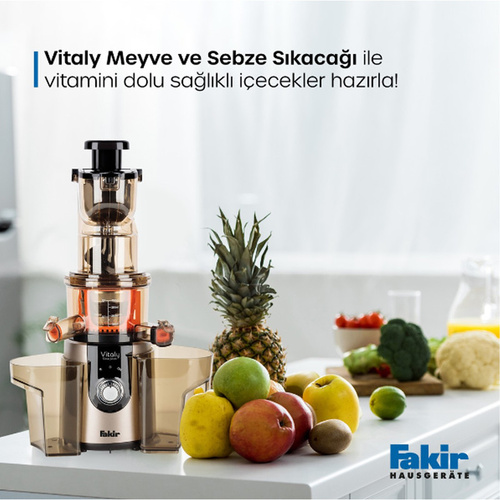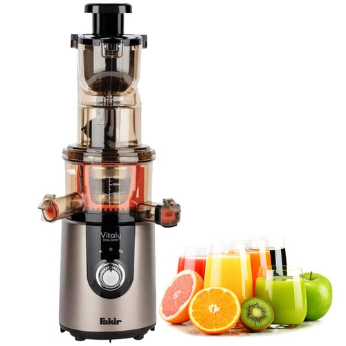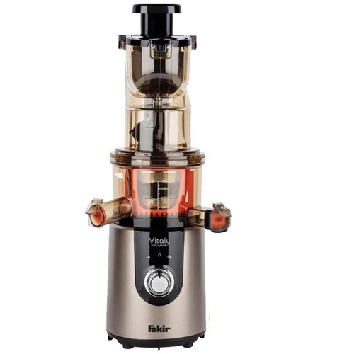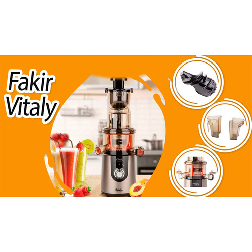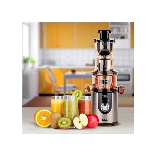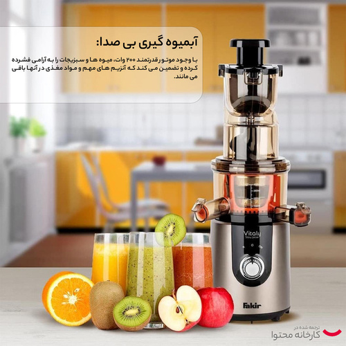 آبمیوه گیری فکر پالپی مدل VITALY دستگاهی خوش ساخت می باشد که ظاهری شبیه به عصاره گیر دارد و رنگ بدنه ی آن نیز نقره ای می باشد. شما می توانید به وسیله ی این دستگاه نوشیدنی های متنوعی را تهیه کنید. به ویژه در فصول گرم سال مانند تابستان که مصرف نوشیدنی های خنک و متنوع بسیار زیاد می شود، وجود چنین دستگاهی در هر خانه می تواند کارساز باشد. همانطور که می دانید مصرف آبمیوه های طبیعی تبدیل به امری مرسوم در جامعه ی امروزی شده است. و اکثر افراد برای حفظ سلامتی جسم خود ترجیح می دهند که از آبمیوه های خانگی و طبیعی استفاده کنند. جنس بدنه ی این محصول از پلاستیک مقاوم ساخته شده است که در مقابل ضربه ها و فشارهای مختلف دچار آسیب نخواهد شد.تفاله گیر : یکی از مهم ترین مزیت های این دستگاه آبمیوه گیری این است که دارای مخزن تفاله گیر می باشد. وجود مخزن تفاله گیر سبب می شود که تفاله های میوه های مختلف در این مخزن قرار بگیرند و وارد نوشیدنی شما نشوند. در نتیجه نوشیدنی کاملا خالصی را می توانید به وسیله ی این دستگاه تهیه کنید. علاوه بر این، ورود تفاله به موتور دستگاه آبمیوه گیری میتواند آسیب های جدی به آن وارد کند که وجود چنین مخزنی از این اتفاق نیز جلوگیری خواهد کرد. ظرفیت مخزن تفاله ی این دستگاه آبمیوه گیر برابر با هشتصد میلی لیتر است. تیغه : جنس تیغه های این آبمیوه گیر نیز از استیل ضد زنگ ساخته شده است. که مقاومت و دوام بالایی دارد و در اثر شستشوی پی در پی دچار زنگ زدگی نمی شود. این تیغه ها بسیار بُران هستند و به همین سبب به افزایش سرعت عمل دستگاه کمک شایانی می کنند. اجزای همراه :فرچه تمیز کننده و دسته فشار دهنده و کاسه ها