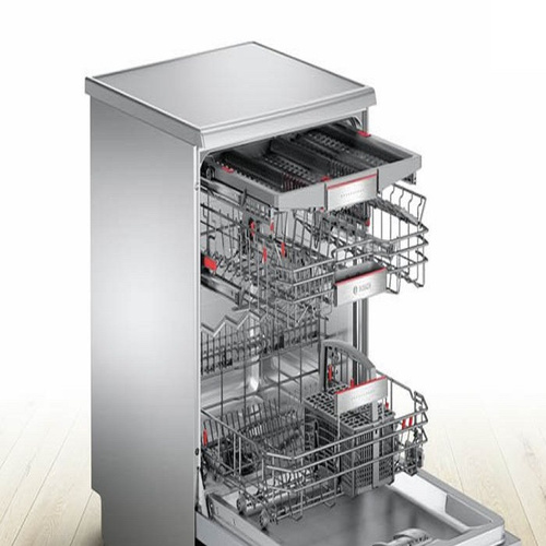 ماشین ظرفشویی 13 نفره بوش مدل SMS6EMI65Q سری 6 استیل از محصولات خوش ساخت برند BOSCH با طراحی خاص و ظاهر زیبا تولید و روانه بازار شده. ماشین ظرفشویی بوش 6EMI65 بصورت مبله با رنگ استیل بسیار منحصر بفرد، یکی از گزینههای بسیار عالی برای خرید به شمار میرود. ظرفیت 13 نفره براحتی حجم زیادی از ظروف را در محفظههای خود جای میدهد و نیاز یک خانواده پرجمعیت را برآورده خواهد کرد. ظرفشویی سری 6 بوش مدل 6EMI65Q با رنگ استیل بسیار عالی و قابلیت ضد اثر انگشت از کثیفی بیش از حد جلوگیری میکند. ماشین ظرفشویی بوش 6EMI65 ساخت کشور ترکیه است. ماشین ظرفشویی بوش 6EMI65 با ظرفیت 13 نفره در رنگ استیل با بدنه ضد زنگ و مقاوم بصورت مبله یکی از بهترین و زیباترین محصولات بوش است. کمپانی بوش برای طراحی این ظرفشویی ظرافت بالایی را به خرج داده، رنگ زیبای نقرهای با استفاده از بدنه فولادی چشم هر بینندهای را مجذوب خود میکند. نحوه باز شدن درب ماشین تا زاویه 90 درجه باعث میشود؛ براحتی بتوانید سبدها را از داخل آن بیرون بیاورید و کاربری آسانتری را برایتان ایجاد میکند. صفحه نمایش لمسی که در قسمت بالای ماشین ظرفشویی بوش 6EMI65 امکان کاربری آسانتری را ایجاد کرده، وجود برنامهها و عملکردهای مختلف از نمایشگر براحتی قابل برنامه ریزی میباشد. در بخش داخلی ماشین ظرفشویی بوش 6EMI65Q ، از جنس استیل ضد زنگ کمک گرفتهاند که در مجاورت آب و رطوبت به هیچ عنوان دچار آسیب دیدگی نمیشود. ماشین ظرفشویی بوش 6EMI65 از سه سبد مجزا ساخته شده، که دو سبد آن برای قرارگیری ظروف طبقه بندی شده و یک سبد در بالا و مجزا جهت قرار دادن قاشق، چنگال و چاقو در نظر گرفته شده. بطور کلی ظرفیت بالای این ماشین ظرفشویی مشکل بسیاری از خانوادهها را در مهمانیها و مراسمات حل کرده؛ زیرا با تنظیم سبدها میتوان حجم زیادی از ظروف را مورد شستشو قرار داد. این محصول با ابعاد 60x60x85 سانتی متر بهترین گزینه برای آشپزخانههای مدرن امروزی خواهد بود.