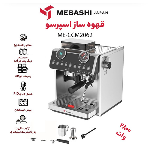 خرید اینترنتی اسپرسو ساز مباشی مدل ME-CCM2062 با رنگبندی نقره ای، استیل، پلاتینیوم به همراه مقایسه، بررسی مشخصات و لیست قیمت امروز در فروشگاه اینترنتی کیچن آپ